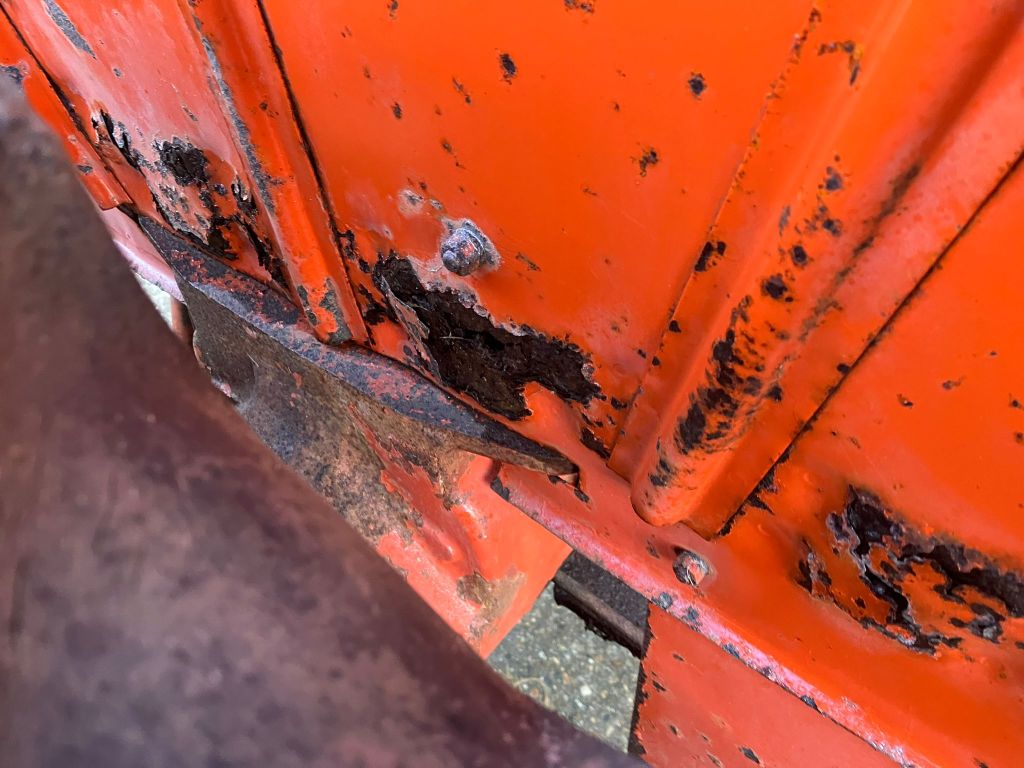 I’m fairly sure the paintwork, bar the yellow front wheel is all original! Tin work all present, has seen a bit of action, but largely straight. Rear wings do have a bit of rot where they join the mounting plate, but the tops are still in good order.